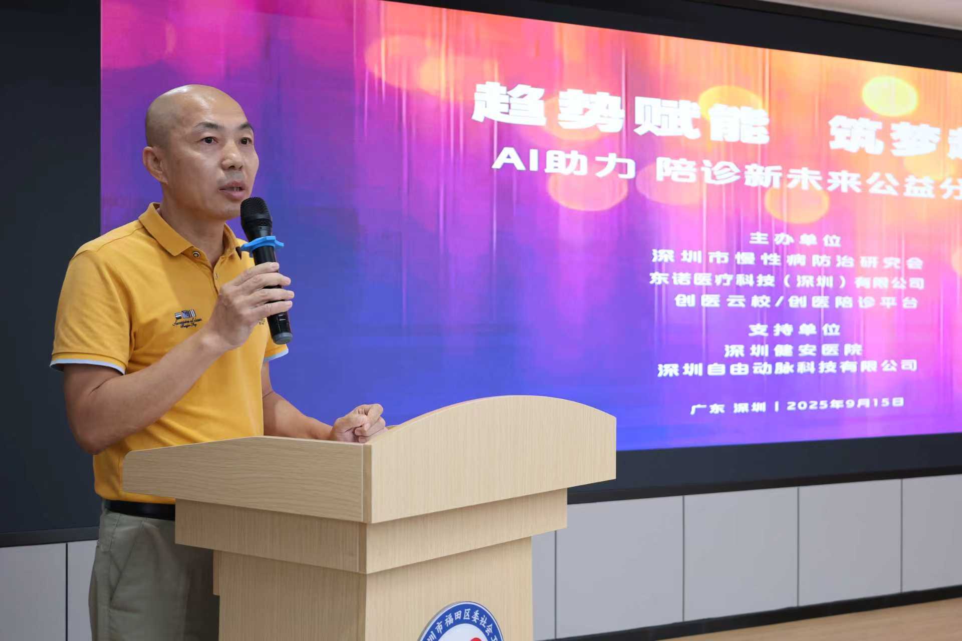 由深圳市慢性病防治研究会、东诺医疗科技(深圳)有限公司、创医云校/创医陪诊主办的“趋势赋能 筑梦起航” ——AI助力陪诊新未来公益分享会2025年9月15日下午在社会组织总部基地(福田)成功举办,来自医疗、家政等行业130多人参加了会议, 同时举行了东诺医疗科技(深圳)有限公司副会长单位的授牌仪式。