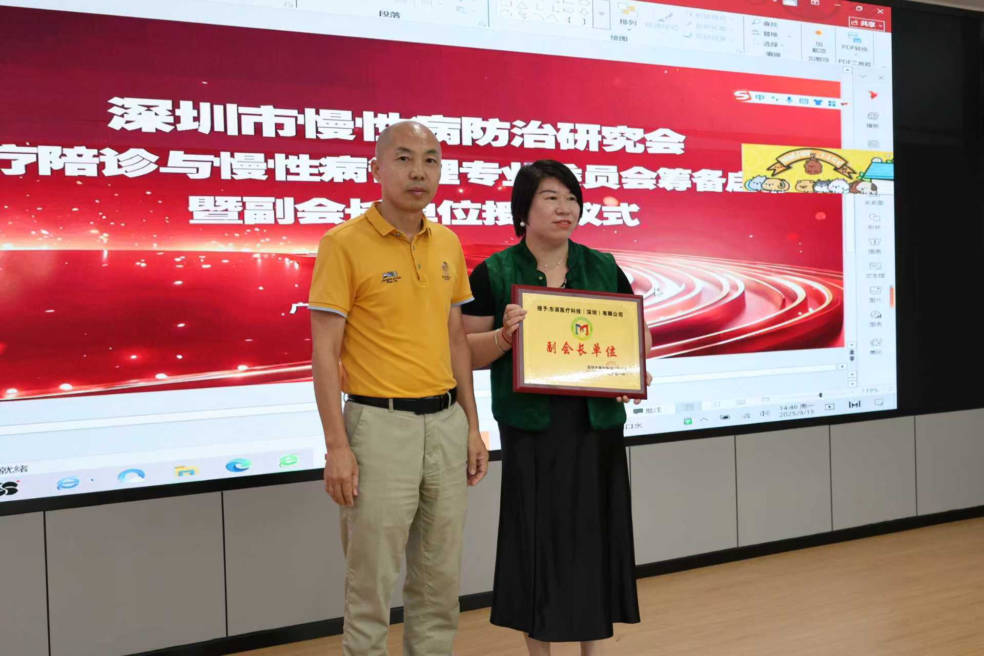 由深圳市慢性病防治研究会、东诺医疗科技(深圳)有限公司、创医云校/创医陪诊主办的“趋势赋能 筑梦起航” ——AI助力陪诊新未来公益分享会2025年9月15日下午在社会组织总部基地(福田)成功举办,来自医疗、家政等行业130多人参加了会议, 同时举行了东诺医疗科技(深圳)有限公司副会长单位的授牌仪式。